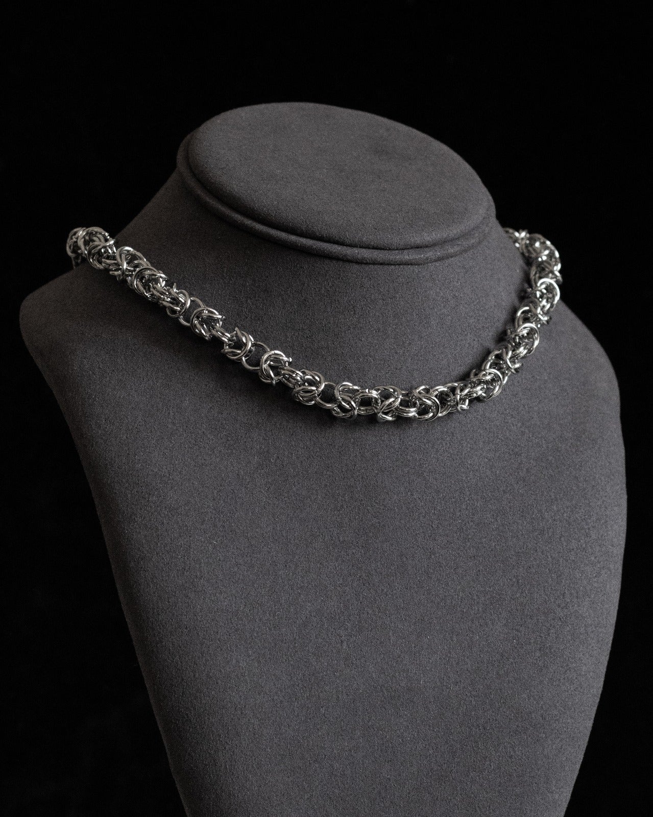 Elevate your alternative style with this handcrafted stainless steel chainmail necklace, meticulously made using the classic Byzantine weave. Each ring is individually opened, linked, and closed by hand, creating a dense, intricate pattern that feels both bold and refined.