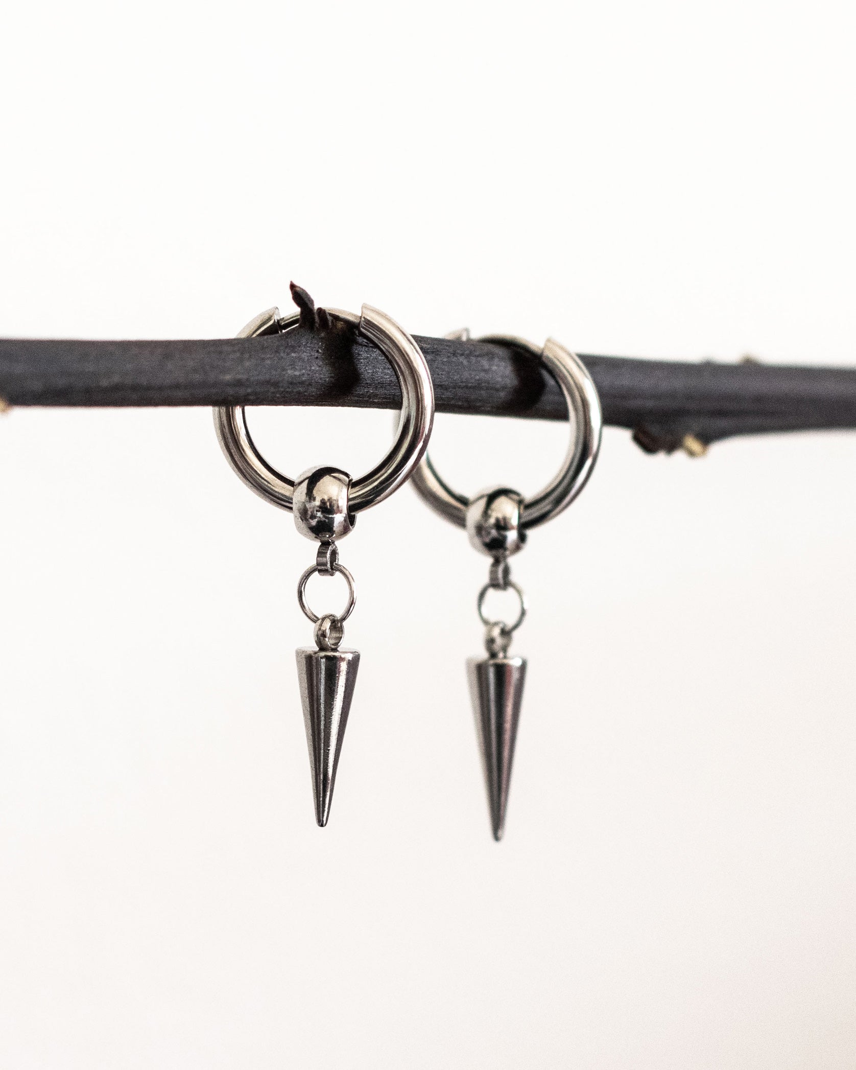 Stainless steel hoop earrings with bold spike pendants. Designed for an edgy, alternative style, these earrings are durable, lightweight, and perfect for everyday wear. A versatile statement piece that adds attitude to any look.